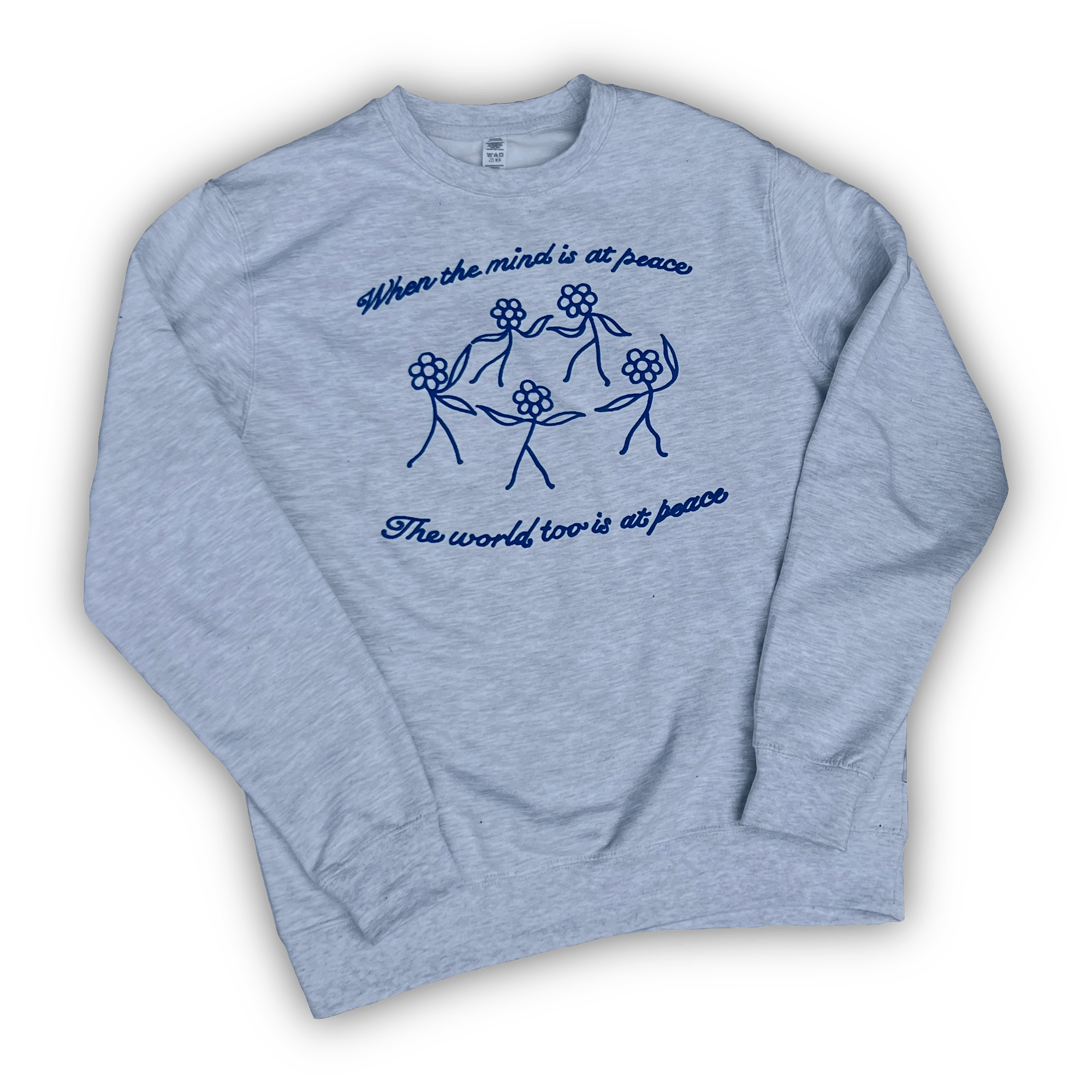 When the mind is at peace, the world too is at peace. Lovely cosy and soft sweatshirts. Hand screen printed in Brighton, using puffy ink